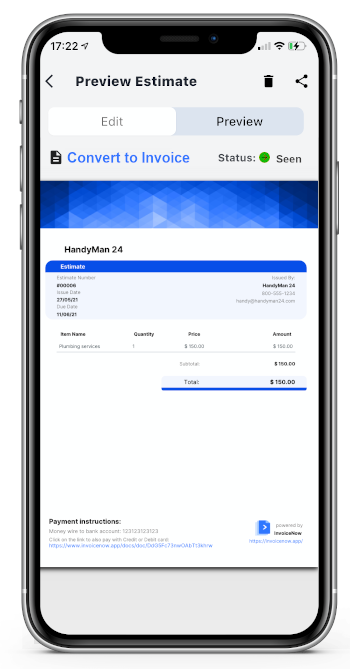 InvoiceNow is a simple and affordable mobile application that allows you to create professional invoices and estimates for your small business in minutes