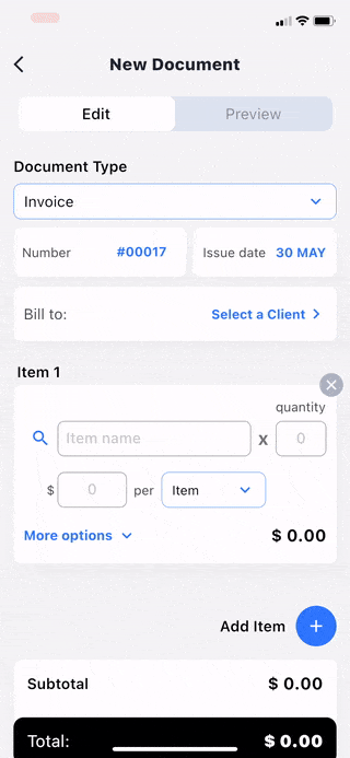 We know you are on the move and we optimized the app to allow you to create documents with just a few clicks. From a single screen in the app select your customer, item which you want to invoice and quantity. You can optionally add discount, tax and transaction date. The rest is done automatically for you.
