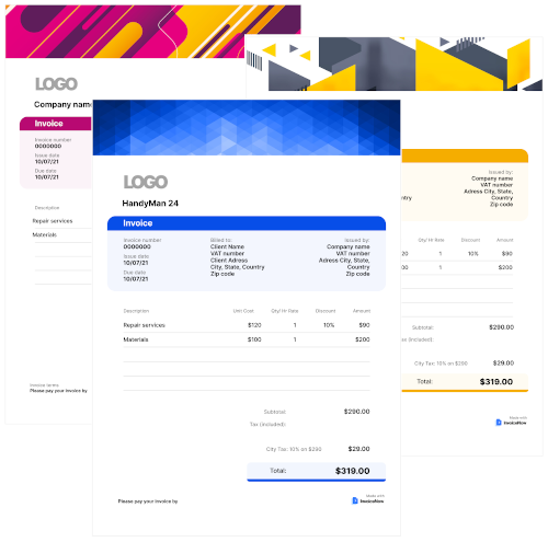 You can select your documents look and feel from a variety of templates. You can even add your company logo and change the colors to match that of your brand. Creating professional looking invoices and estimates has never been easier.